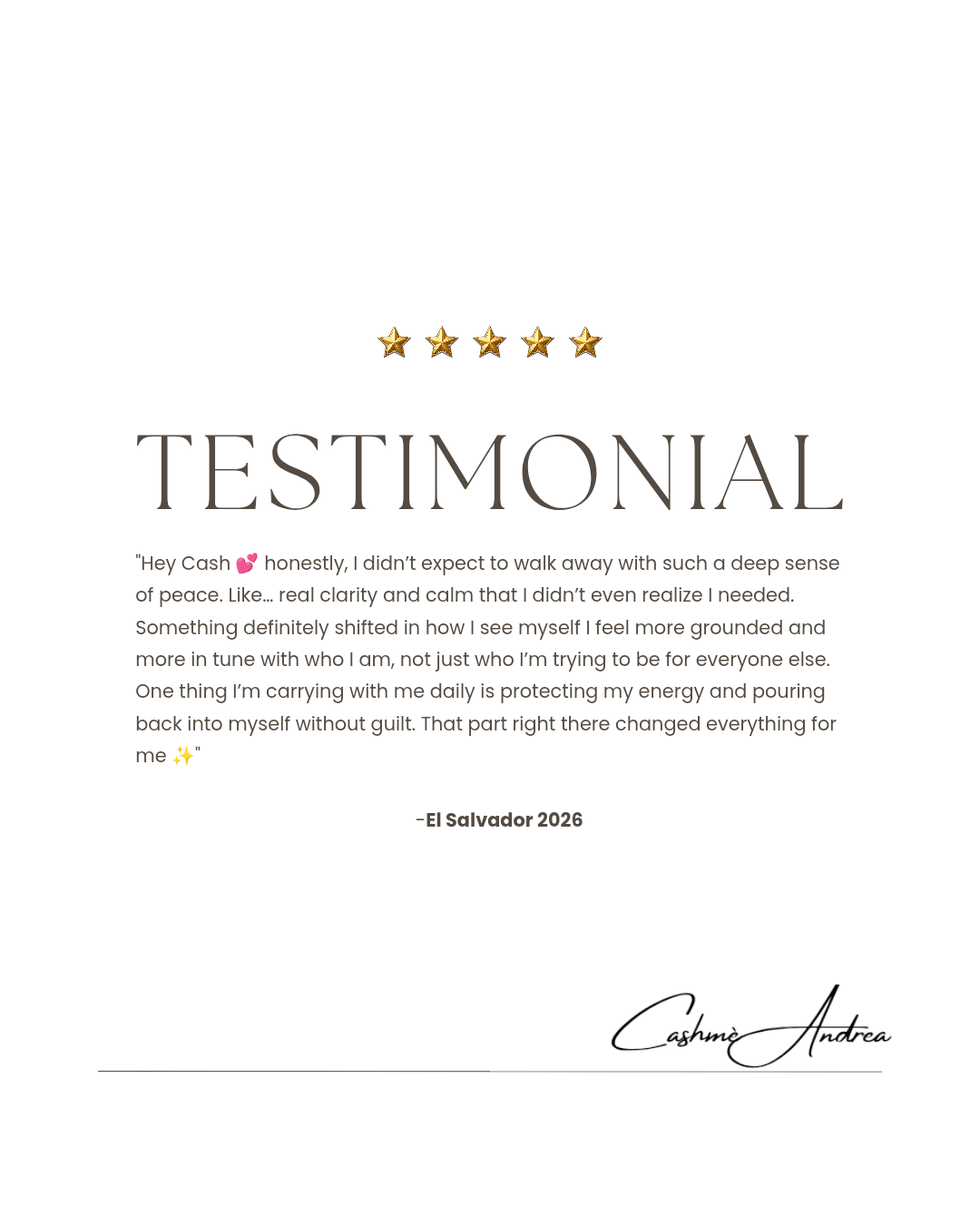 Cashmé, with your character, your calm, grounded nature, and how intentional you are, I felt like your energy aligned perfectly. It was exactly what I needed, especially with everything I had shared with you about what I was going through personally. The peace, the atmosphere, the connection—it all felt divinely orchestrated.